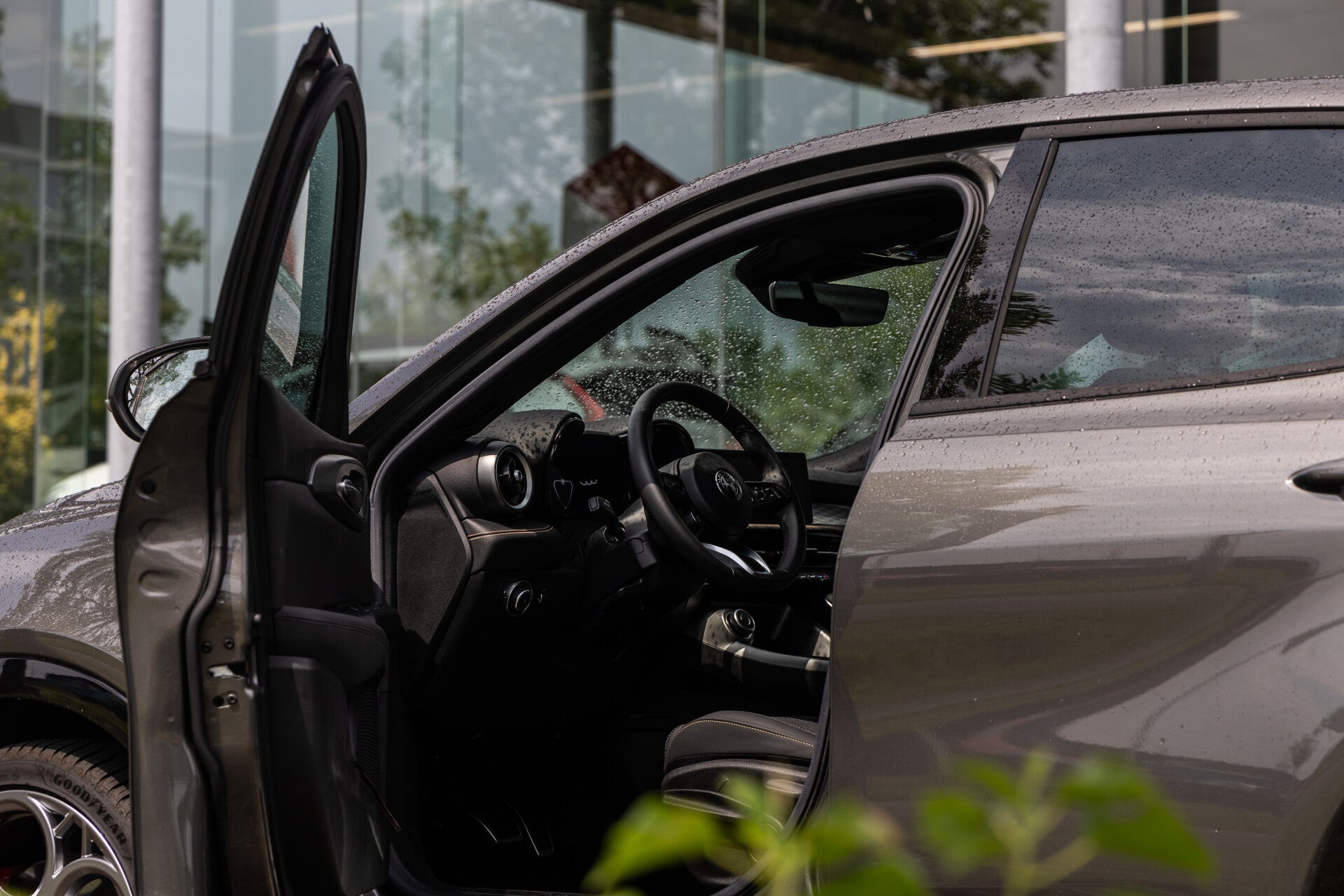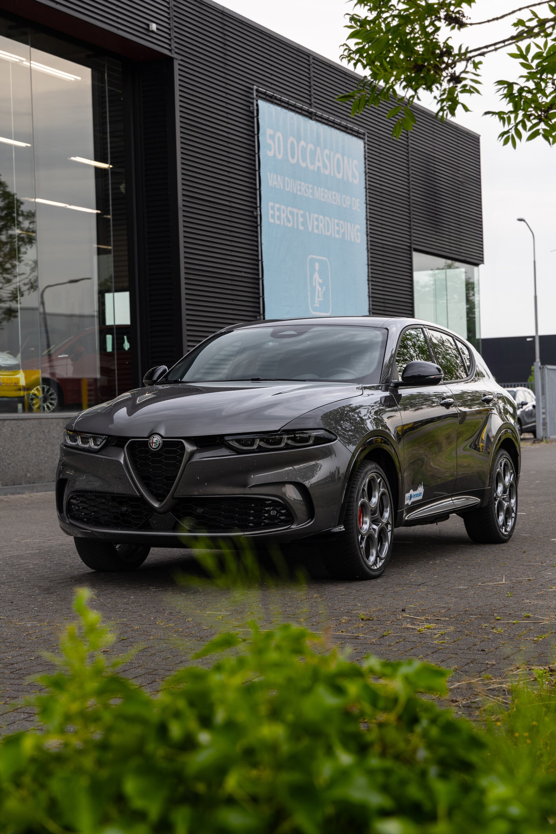 De Alfa Romeo Tonale is een van de nieuwste modellen die Alfa Romeo te bieden heeft. Dit exemplaar betreft de PHEV Veloce, wat deze met 280pk uit een hybride 1.3L 4 cilinder de snelste en krachtigste versie van de Tonale maakt. Overigens is dit niet zomaar een Veloce, maar de Edizione Speciale. Dit valt te zien aan de ''Speciale'' badge op de voor-spatborden, de agressieve LED lichten en de prachtige 20-inch velgen met rode Brembo remklauwen die voor een prachtig contrast zorgen samen met het Grigio Vesuvio exterieur.